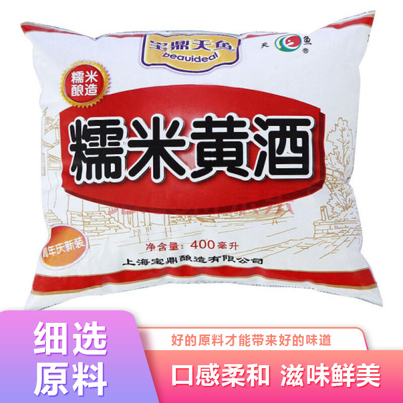 商品相册:宝鼎天鱼 糯米黄酒 料酒 去腥 调味品 调味汁 (400ml /袋*36)整箱年货第