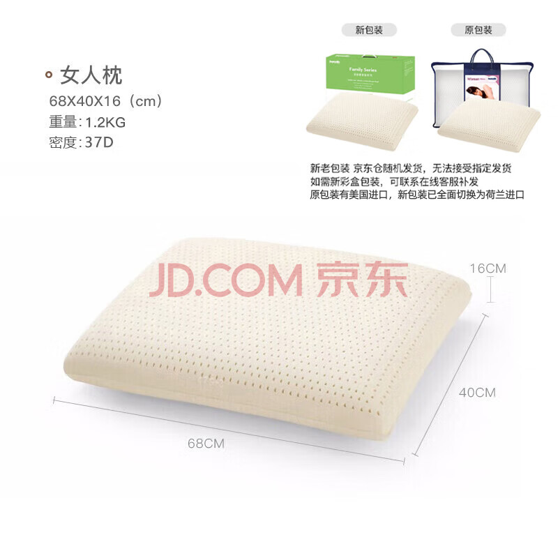 商品相册:邓禄普(Dunlopillo)女人枕 荷兰进口特拉雷Talalay天然乳胶枕 物理发泡工艺 第1张/共3