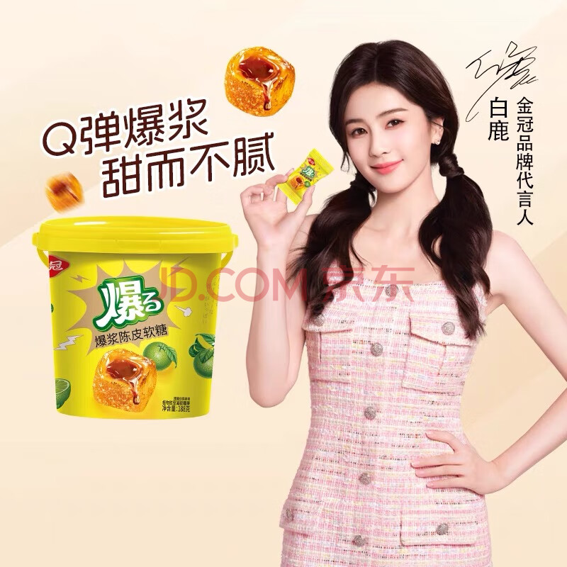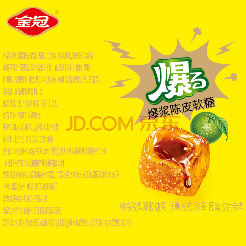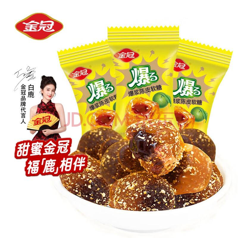 商品相册:金冠 爆浆陈皮糖 500g 约100颗 夹心软糖 白鹿同款 喜糖 休闲零食 第