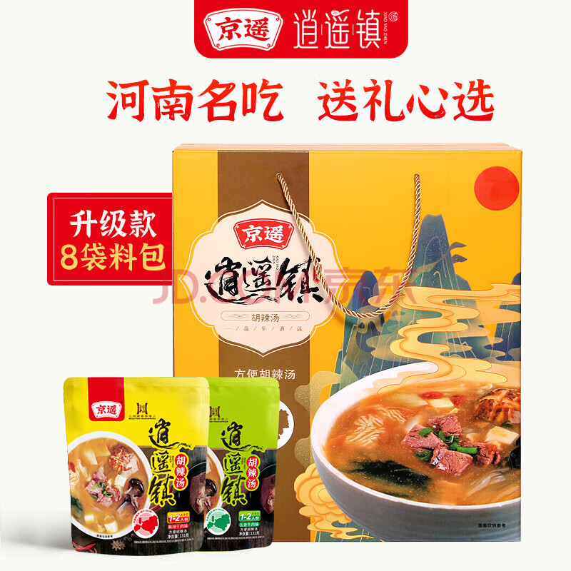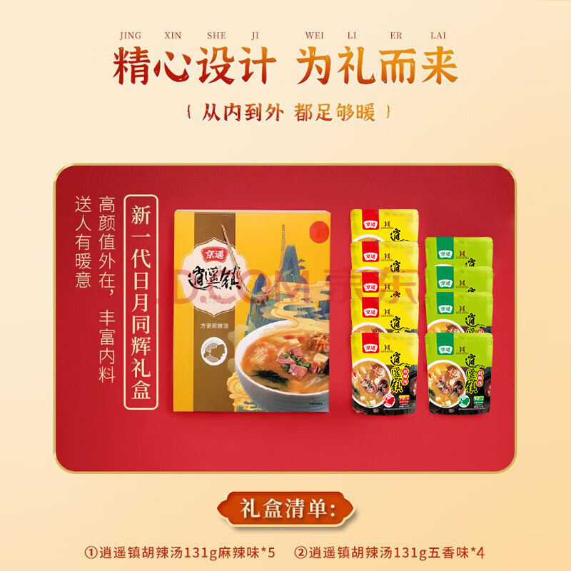 商品相册:京遥清真逍遥镇系列水煮胡辣汤131g*9混合口味麻辣+五香牛肉味礼盒装第
