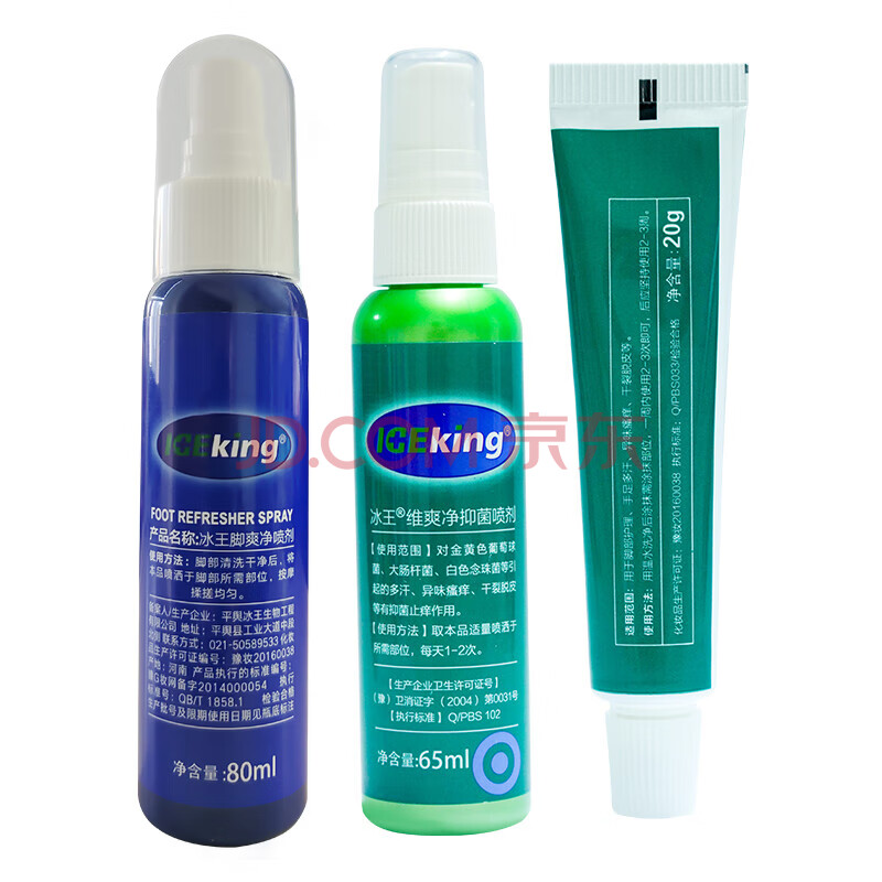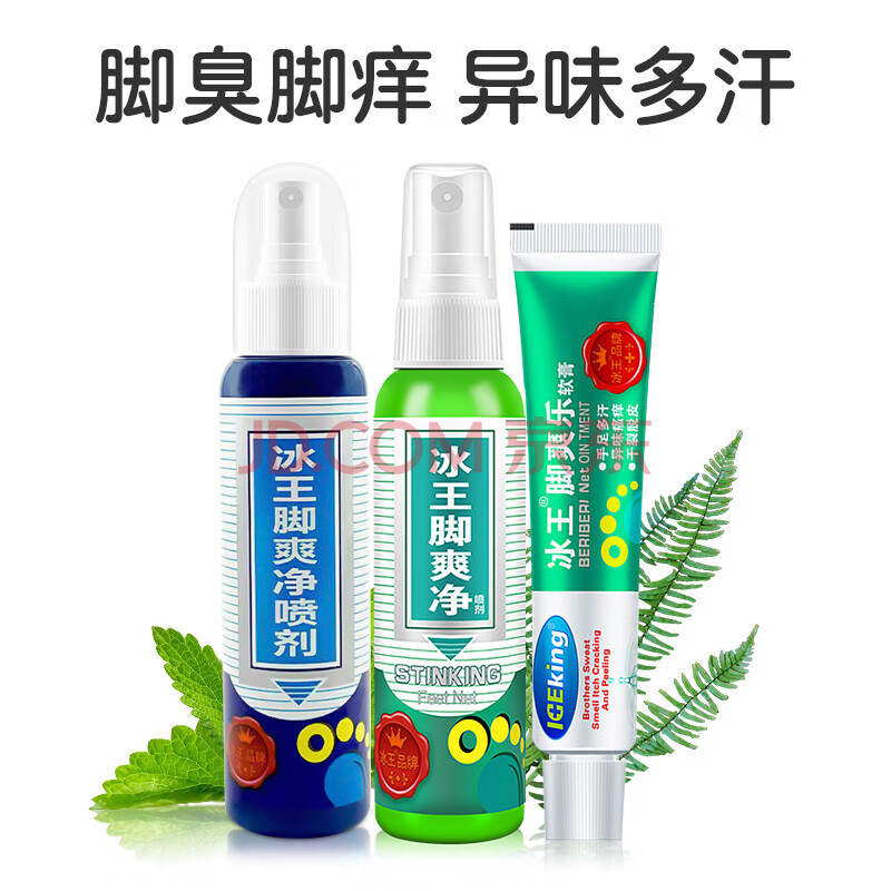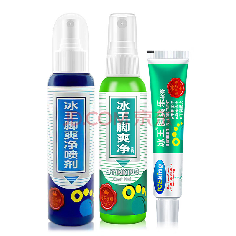 商品相册:冰王脚臭3件套 脚臭净喷剂+脚爽净喷剂+脚爽乐软膏第1张/共4