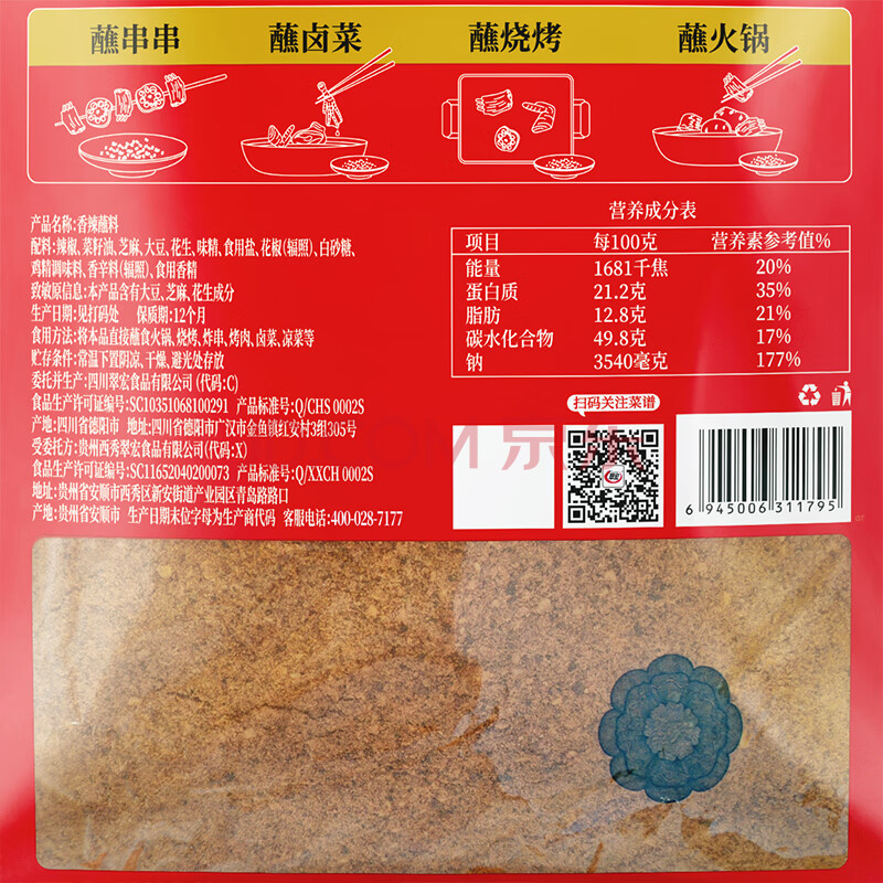 商品相册:翠宏 香辣蘸料2530g批发餐饮商用火锅烤肉串串 四川干碟辣椒面 第