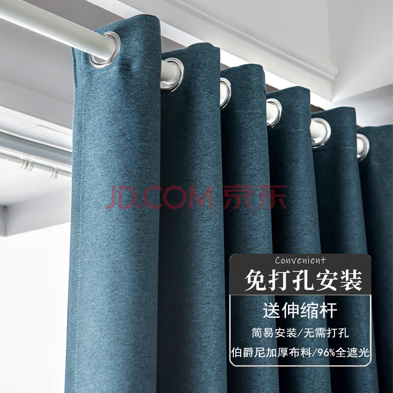 商品相册:伏腾 窗帘免打孔安装卧室门帘全遮光飘窗窗帘杆简易出租房小短遮阳布第