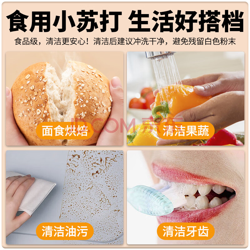 商品相册:野三坡 食用小苏打粉 冲洗牙齿清洁去污厨房清洗果蔬烘焙三瓶装1500g第1张/共6