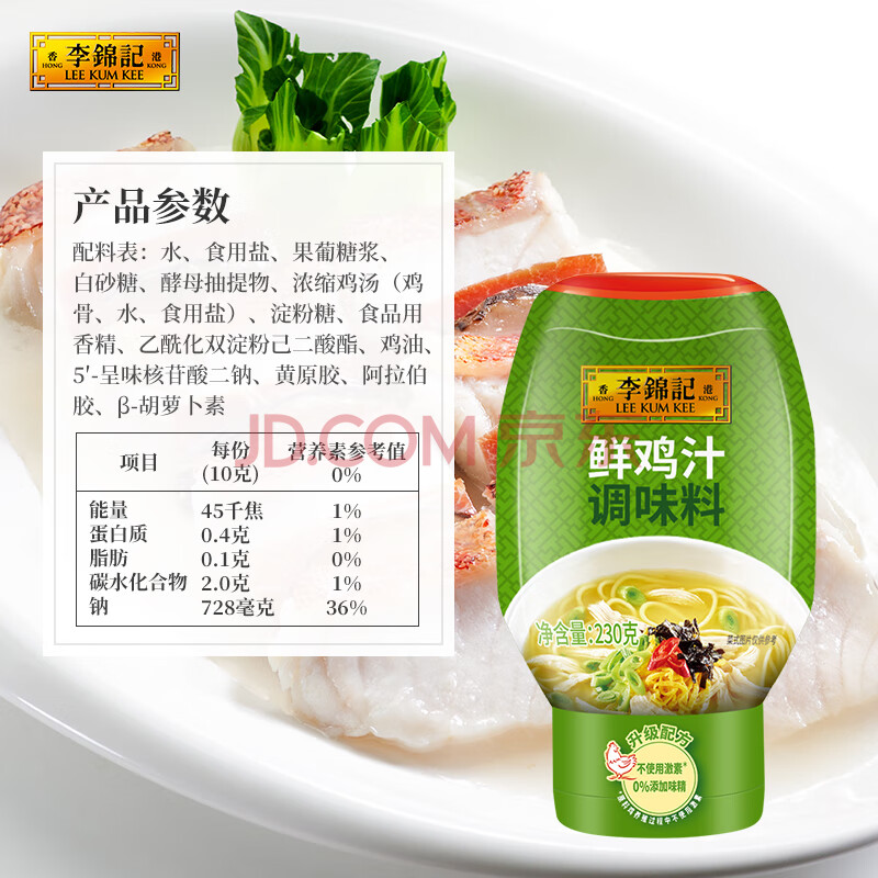 商品相册:李锦记 鲜鸡汁调味料230g 0添加味精不使用激素 点蘸拌炖调味料第