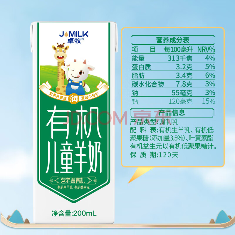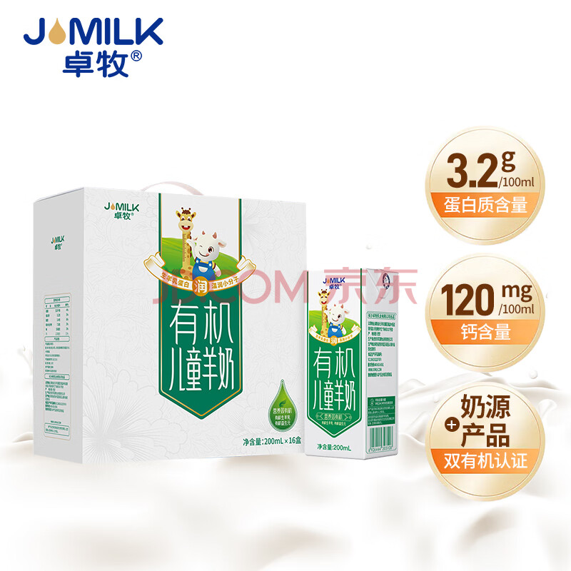 商品相册:卓牧(JOMILK)有机儿童羊奶儿童奶早餐奶天然A2羊乳蛋白200ml*16送礼盒第