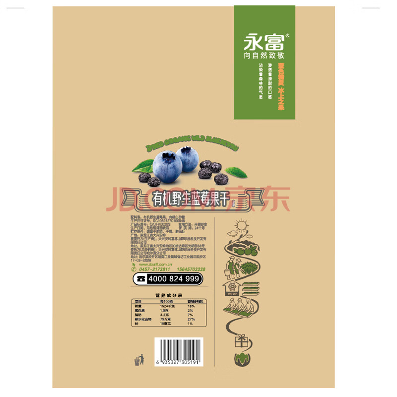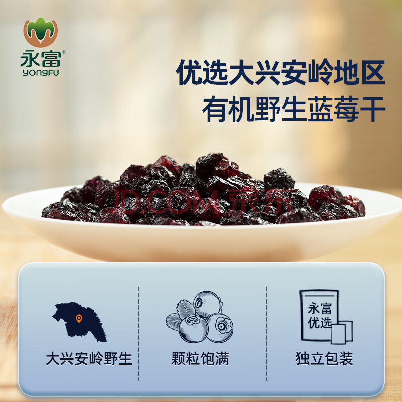 商品相册:永富 有机大兴安岭野生蓝莓干250g 独立包装 东北特产宝宝儿童零食第1张/共7