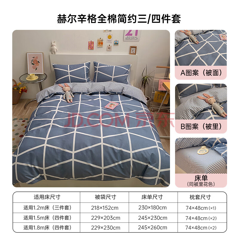 商品相册:多喜爱家纺纯棉床上四件套 100%全棉被套床单床品套件1.8米229*230cm第