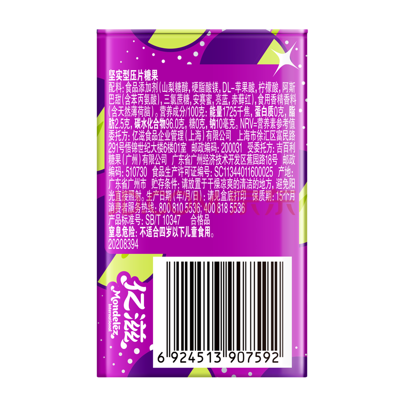 商品相册:炫迈 无糖薄荷糖 清香葡萄味22.5g 糖果休闲零食 清新口气 浓郁果味第