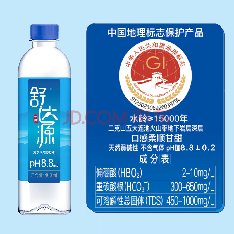 商品相册:舒达源 克东天然苏打水京东自营400ml*24瓶 无糖弱碱性饮用水整箱小瓶第