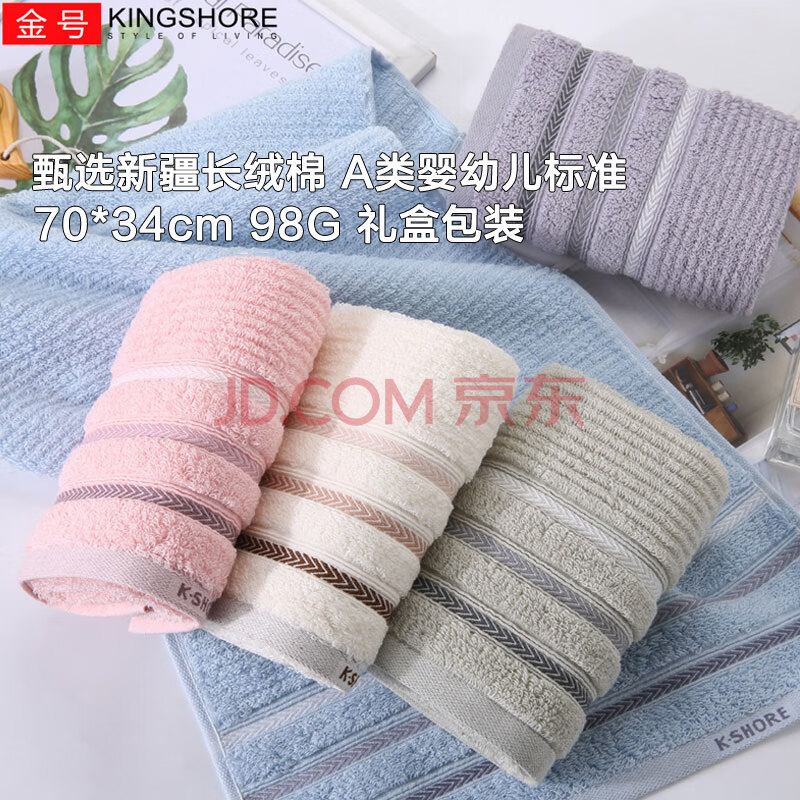 商品相册:金号 毛巾礼盒2条装纯棉提缎面巾 团购 70*34cm 98g/条 含手提袋第