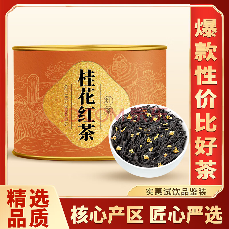 商品相册:福茗源茶叶 桂花红茶小种 新茶古法窖制搭丹桂花茶叶自己喝罐装50g第