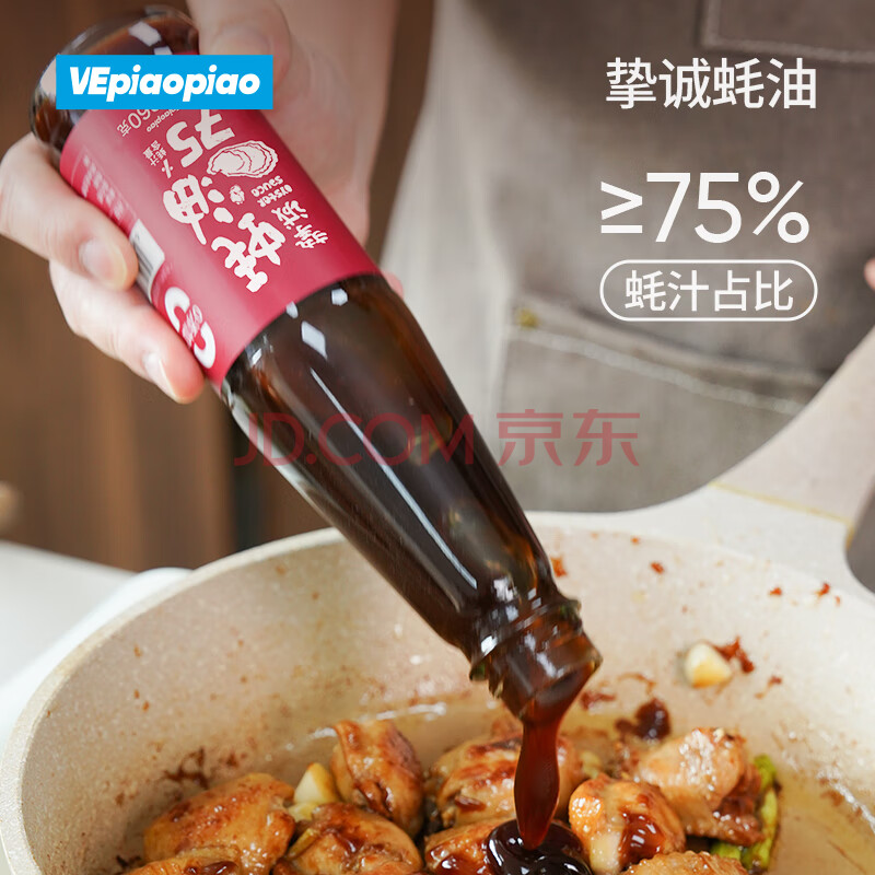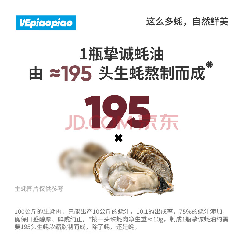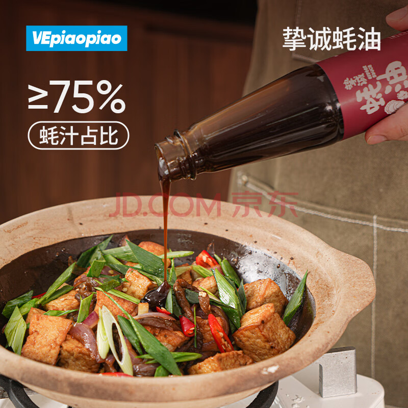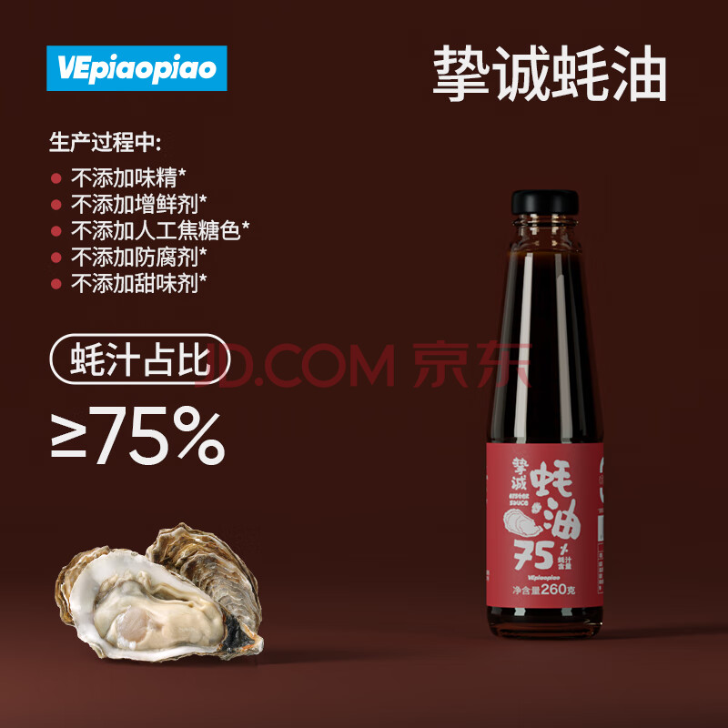 商品相册:VEpiaopiao 配料干净蚝油挚诚蚝油 75%蚝汁占比 0脂肪 净含量260g/瓶第