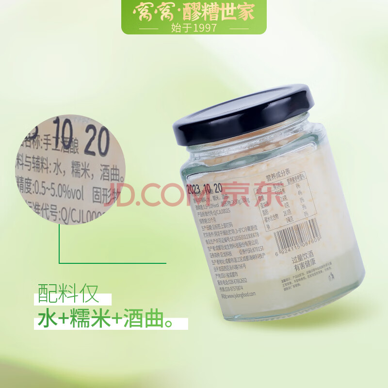 商品相册:窝窝手工精酿醪糟148g*6瓶 月子老米酒甜酒酿 聚会年货送礼第1张/共6