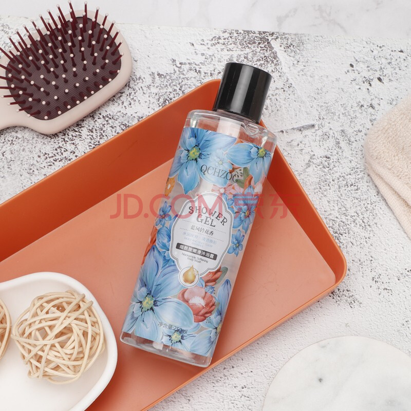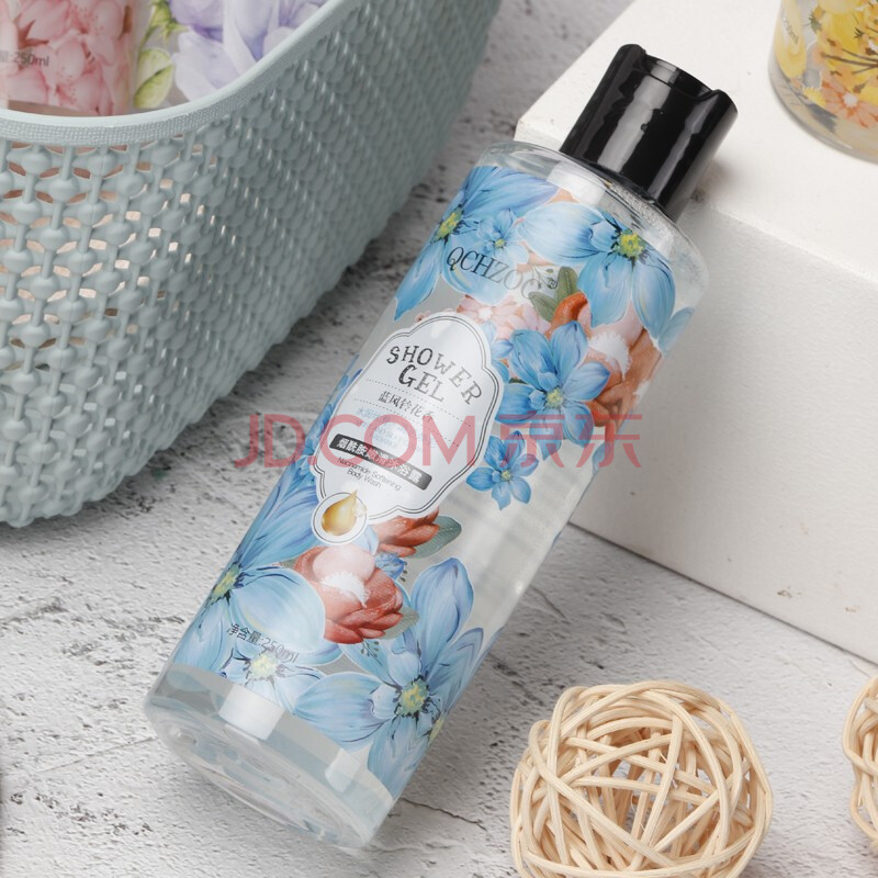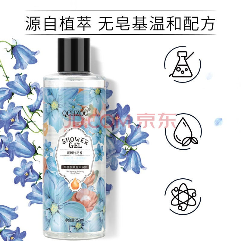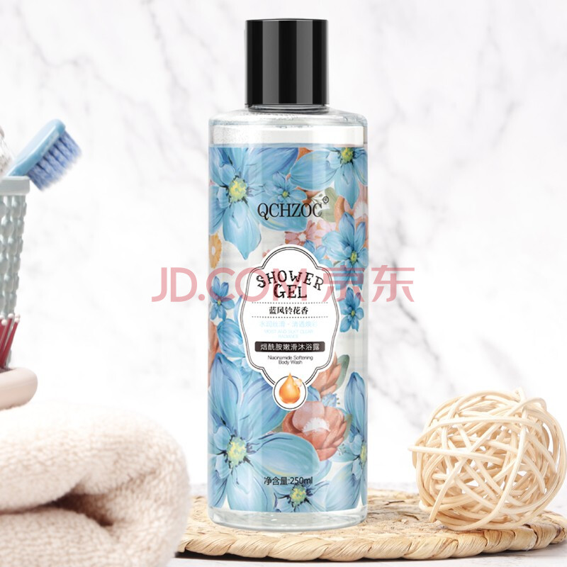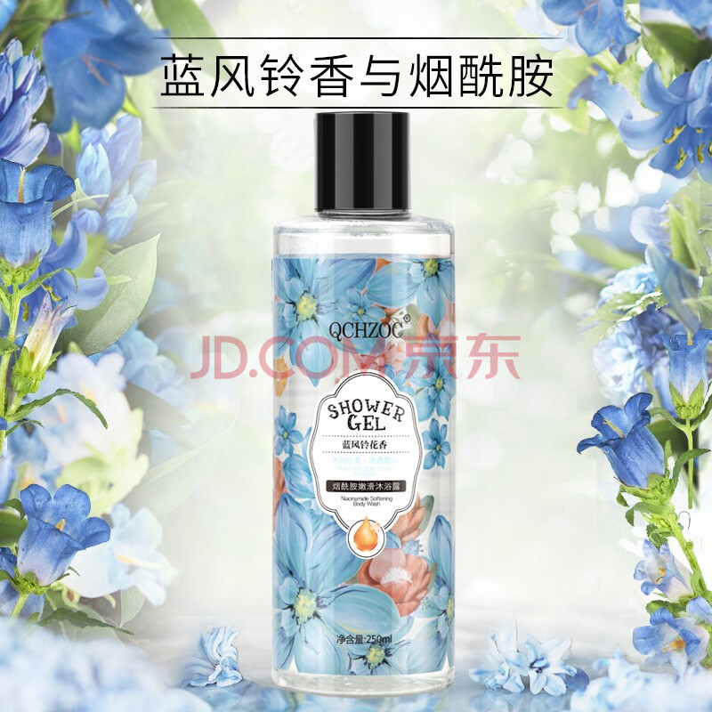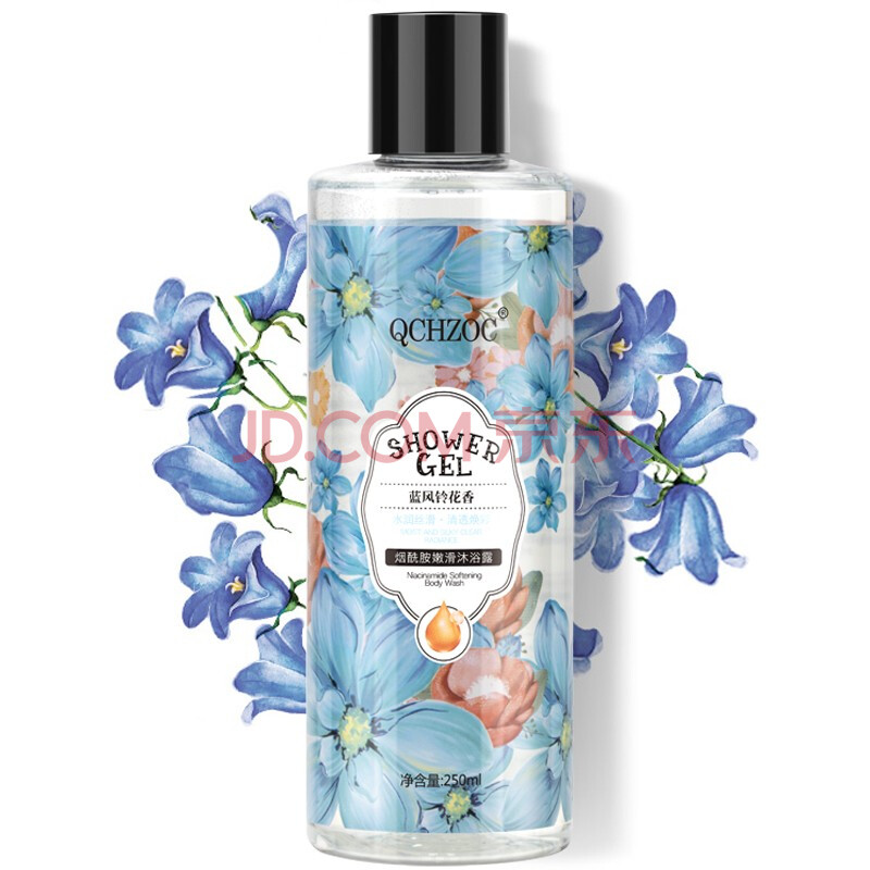 商品相册:QCHZOC蓝风铃滋养嫩肤烟酰胺亮肤植萃香氛沐浴露250ml第