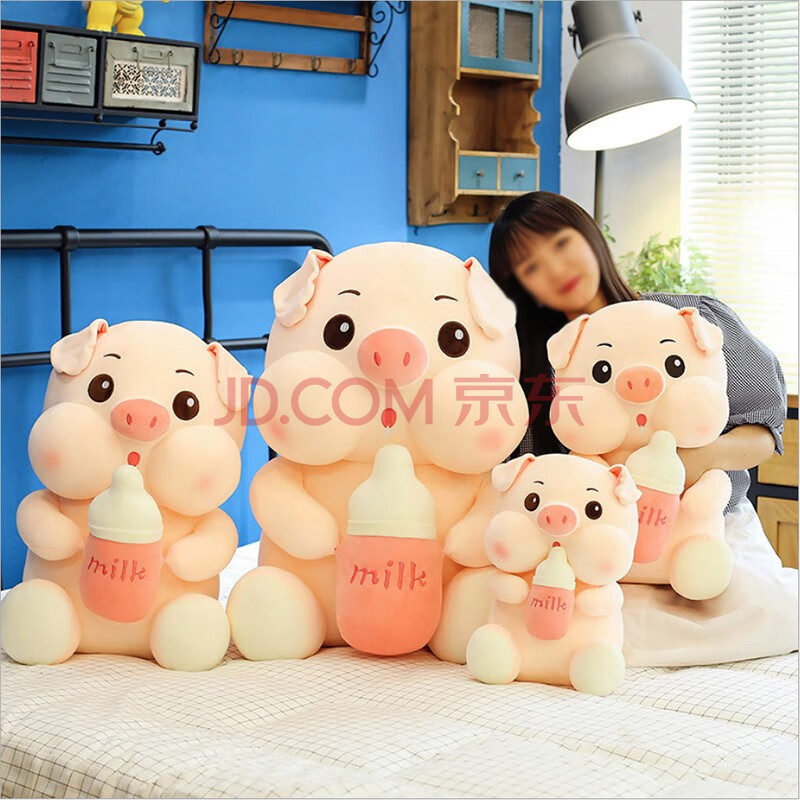 商品相册:兴派 企业专享 奶瓶猪布娃娃毛绒玩具卡通猪猪公仔抱枕34cm 不零售 10个起拍第