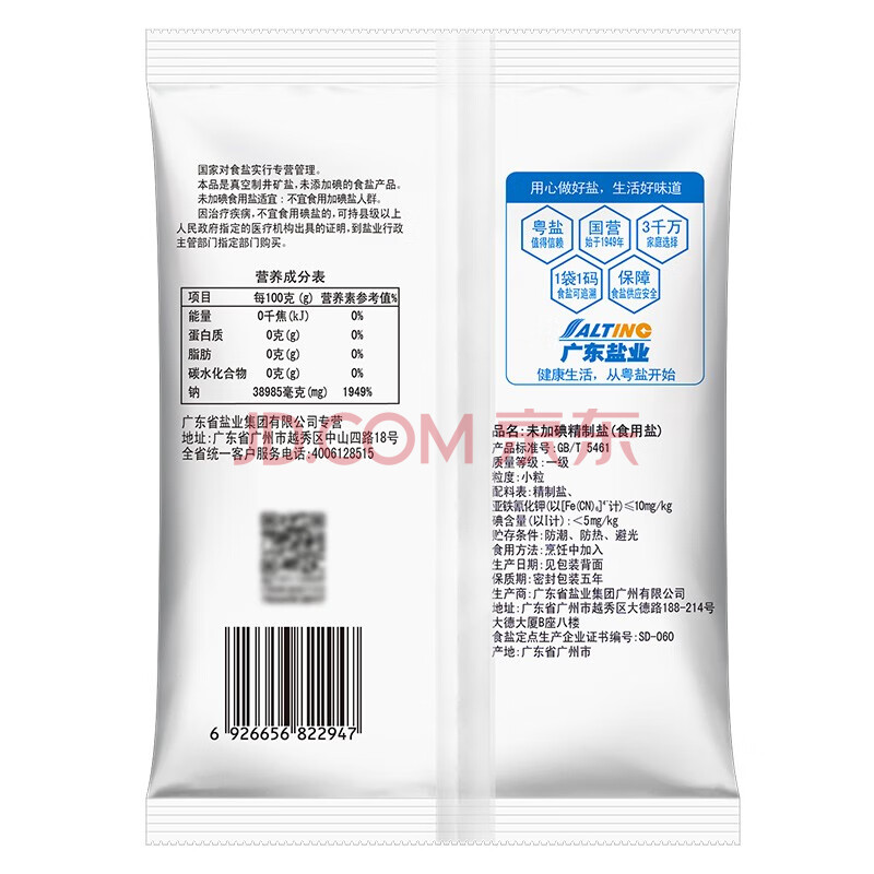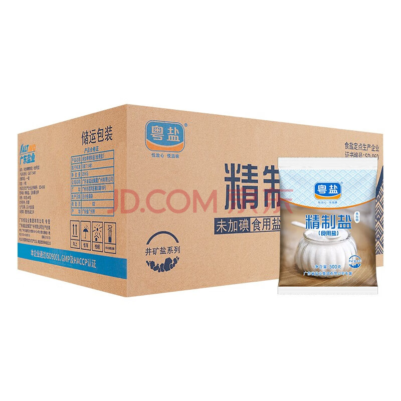 商品相册:粤盐食用盐500g*40包整箱【未加碘】无碘盐 一级精制盐 井矿盐 调料第