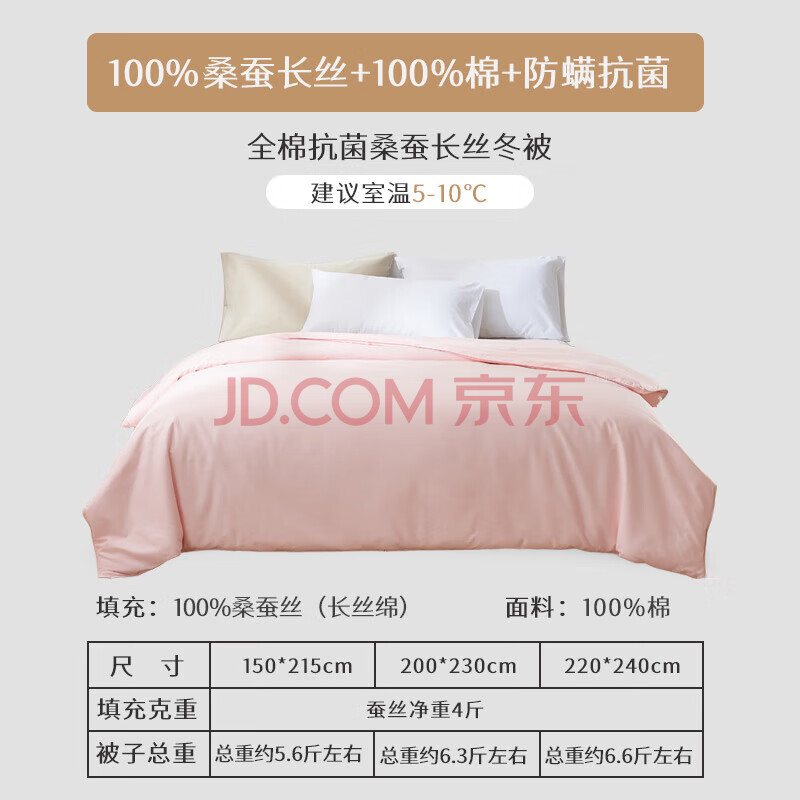 商品相册:太湖雪 100%桑蚕丝厚冬被 蚕丝重4斤 全棉抗菌面料220*240cm粉第