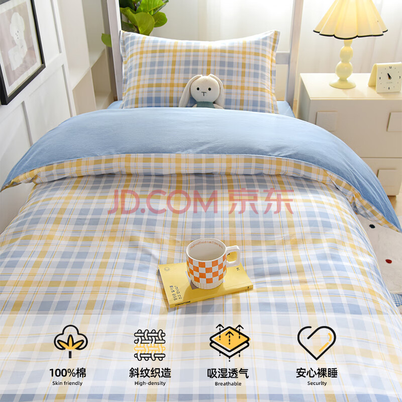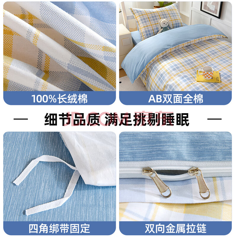 商品相册:梦诗娜纯棉宿舍三件套床上用品大学生床单被套单人床0.9/1.2米 青春印记第