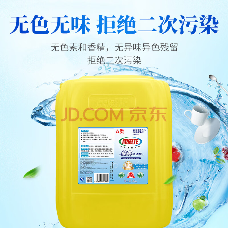 商品相册:康威龙无色无味洗洁精22KG 洗涤食品A类大桶装果蔬洗碗工厂食堂饭店商用第