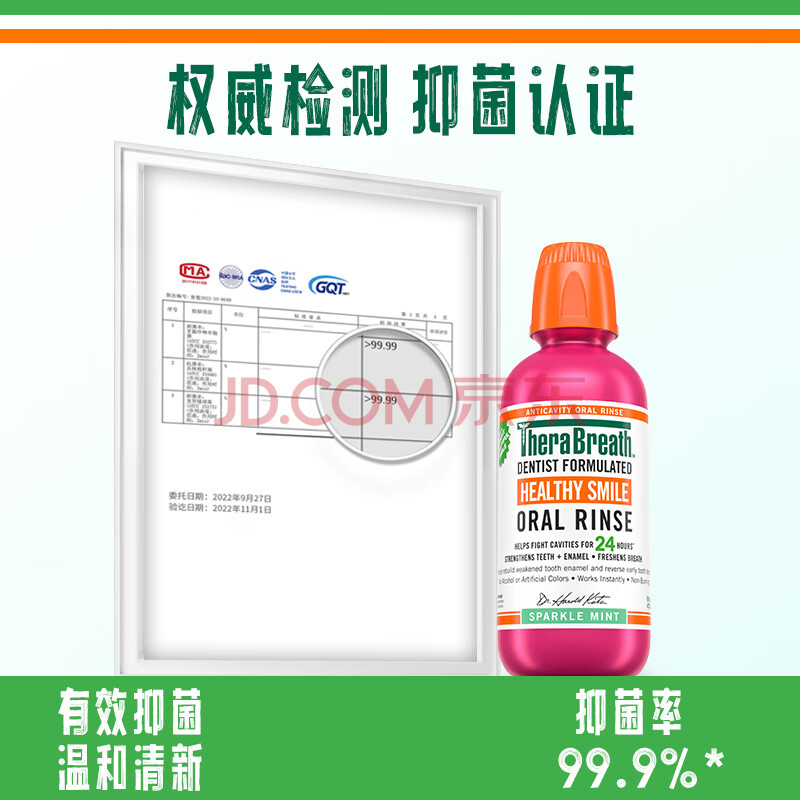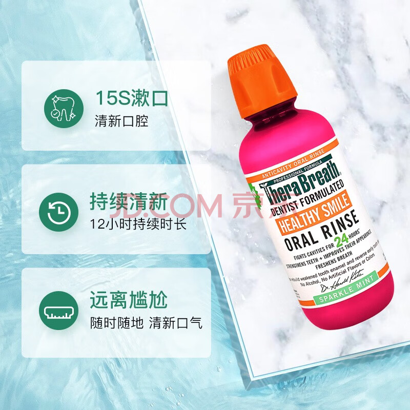 商品相册:TheraBreath凯斯博士漱口水 含氟预防龋齿473ml清新口气 0酒精呵护牙釉质防蛀第