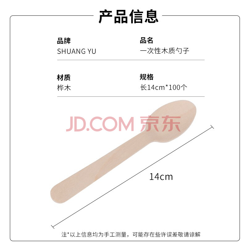 商品相册:SHUANG YU一次性勺子木质汤勺饭勺100只/包可降解外卖勺快餐勺咖啡甜品勺第