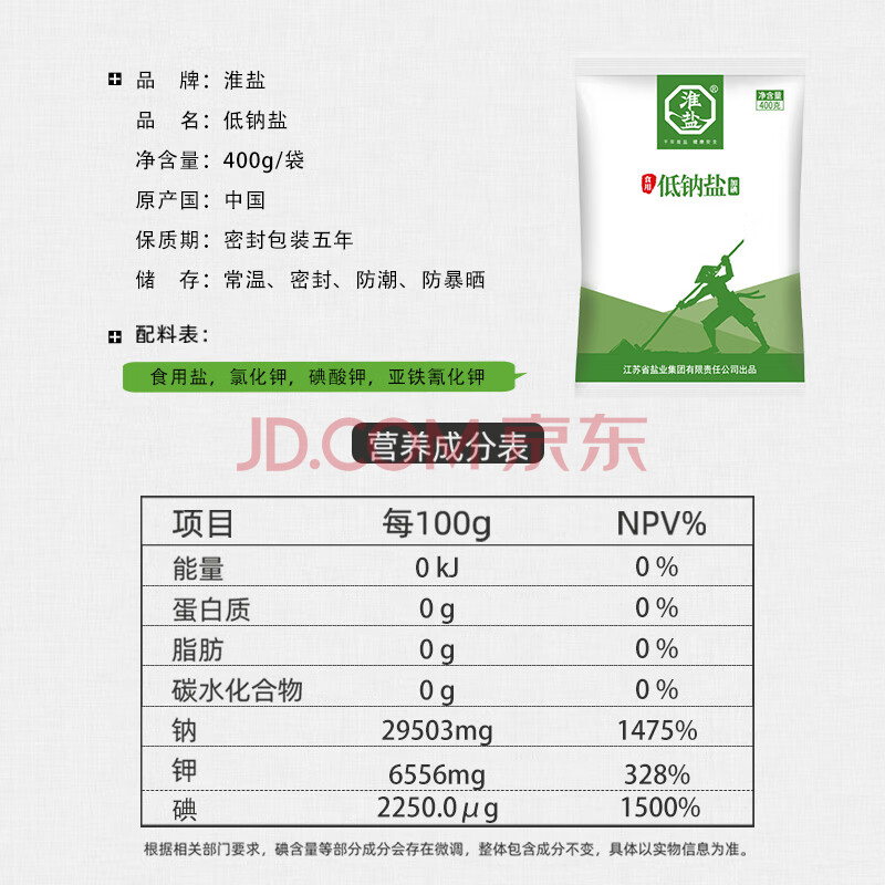 商品相册:淮盐低钠盐400g*50袋加碘家用食盐井矿精制岩盐第