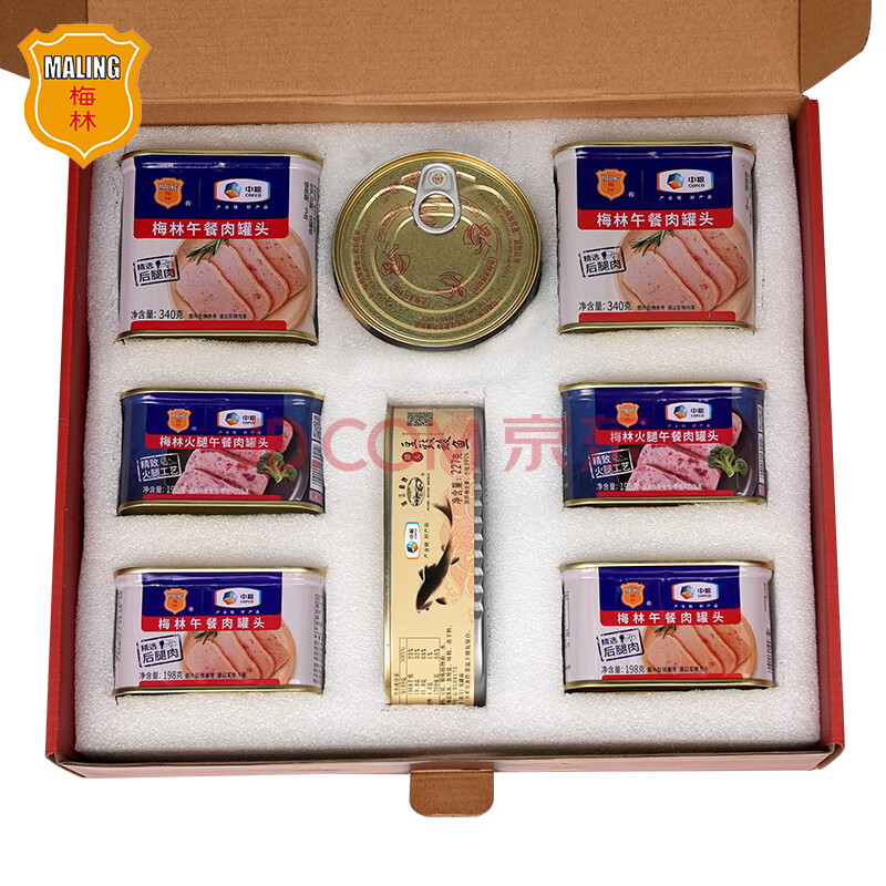 商品相册:梅林午餐肉 万事顺礼盒B款 年货礼品 员工福利 开盖即食 中粮出品第1张/共4