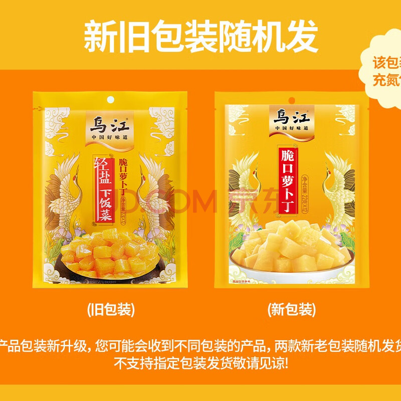 商品相册:乌江榨菜 下饭菜 口口脆 脆口萝卜丁 22g*12袋(量贩装)佐餐小咸菜第