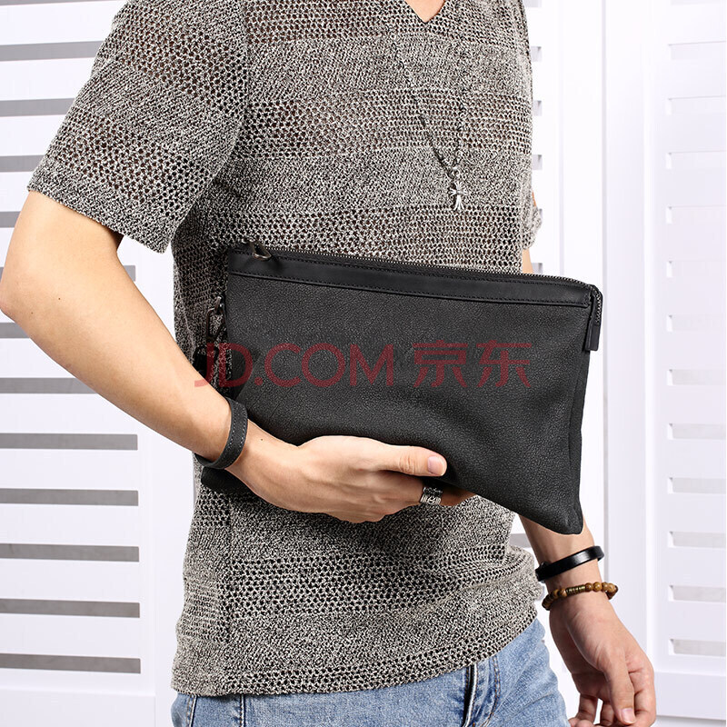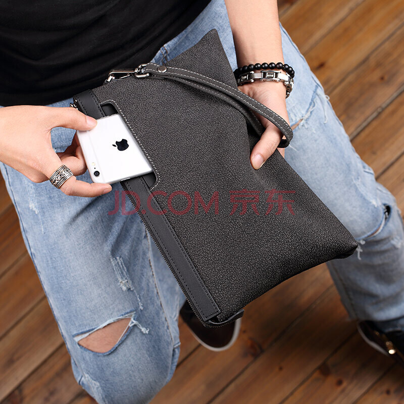 商品相册:派保爵男士手包男头层牛皮手拿包时尚手抓包黑色手腕包生日礼物送男朋友第