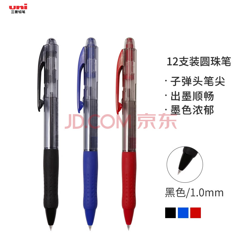 商品相册:uni三菱 SN-100按动式圆珠笔 1.0mm圆珠笔 学生用笔 办公文具签字笔 黑色 12支装第1张/共6