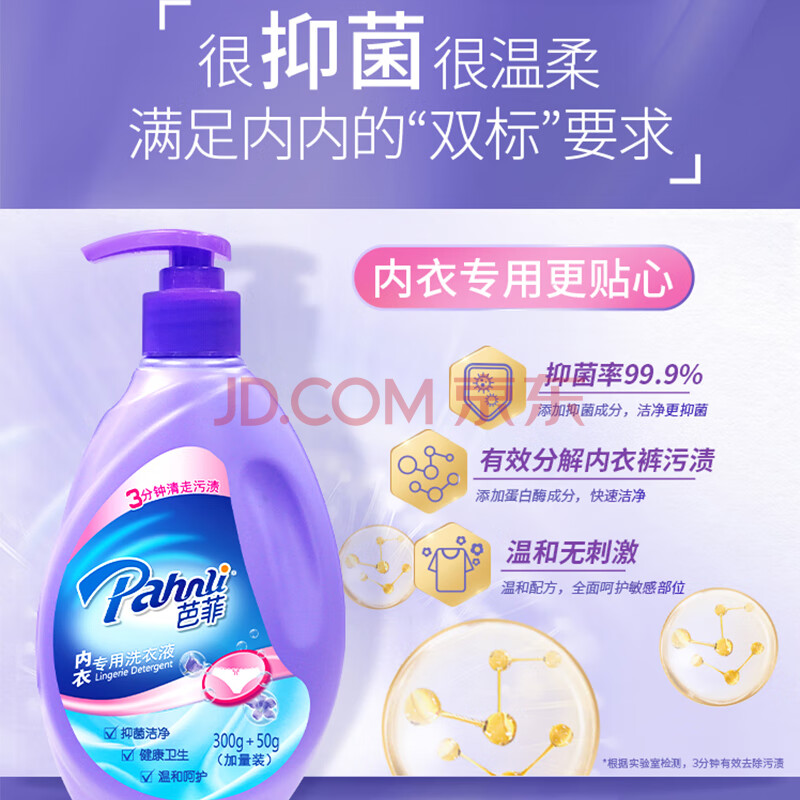商品相册:芭菲内衣专用洗衣液350g 深层洁净去血渍有效抑菌率 99.9%第