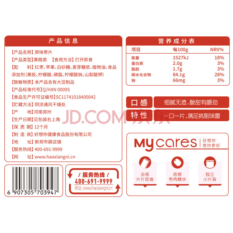 商品相册:好想你 红枣片218g/盒 蜜饯果干休闲零食办公室小吃原味红枣干第