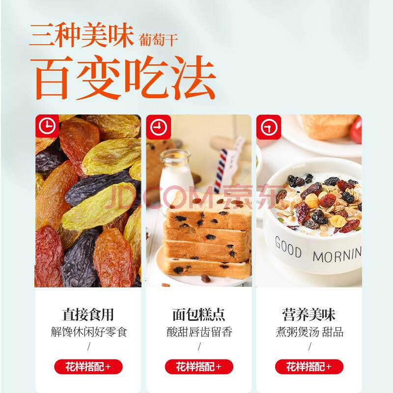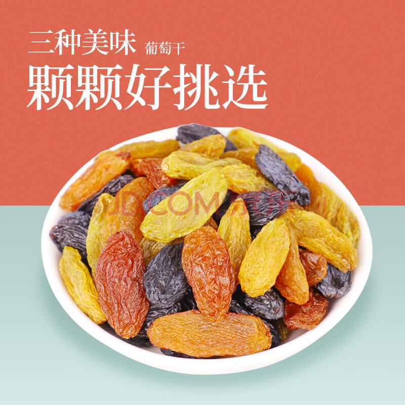 商品相册:南疆巴朗 葡萄干吐鲁番大颗粒红绿黑香妃三色提子干218g/罐小包装第1张/共6