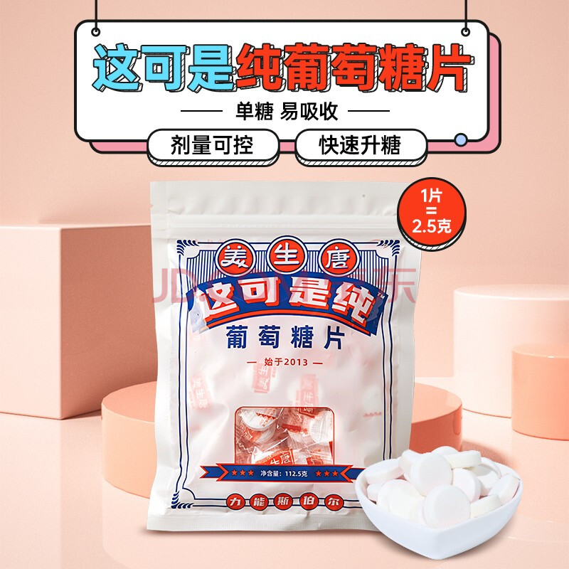 商品相册:美生唐纯葡萄糖片 112.5g 经典原味 低血糖常备 补充能量 压片糖果零食第