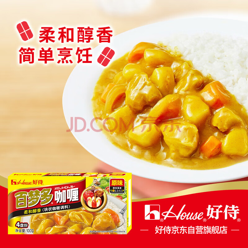 商品相册:好侍(House)百梦多咖喱块 原味 100g/盒 日式块状咖喱调味料 2-4人份第
