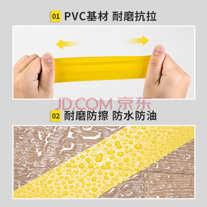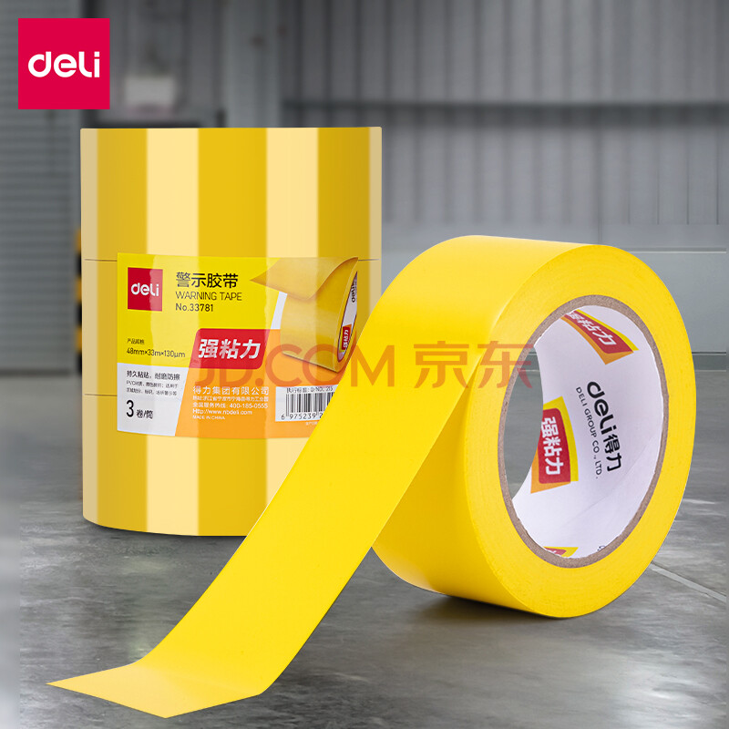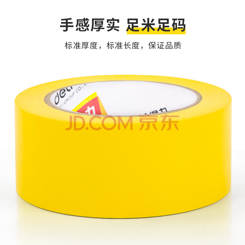 商品相册:得力(deli)黄色安全警示胶带 加厚PVC耐磨防水地标线胶带 警戒带隔离 5S定位胶带 48mm*33m 3卷装 33781第