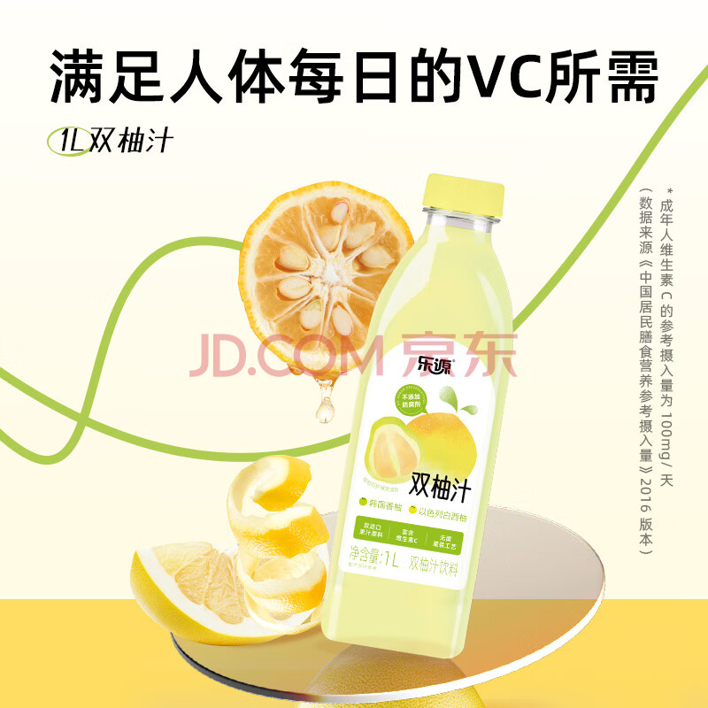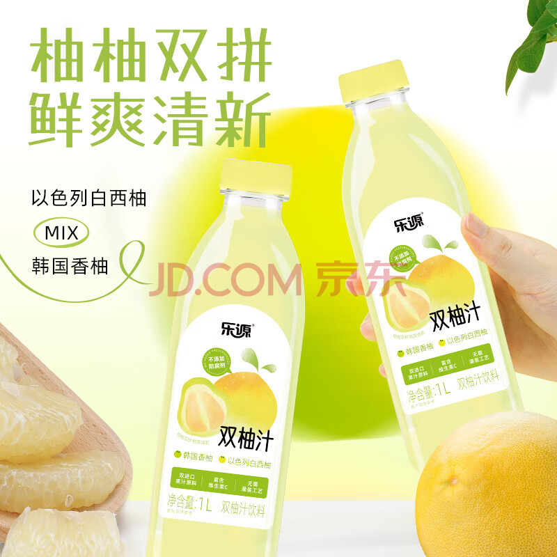 商品相册:乐源双柚汁1L*1柚子味果汁饮料大瓶聚餐饮品0脂肪含VC踏青出游饮品第