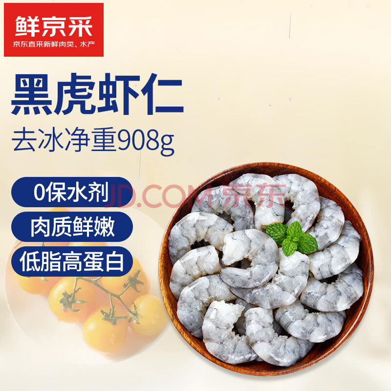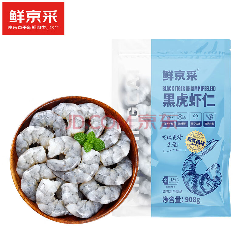 商品相册:鲜京采黑虎虾仁 净重908g 急冻锁鲜健康第1张/共6