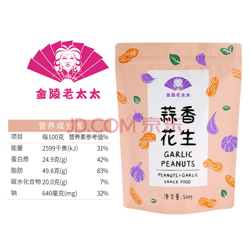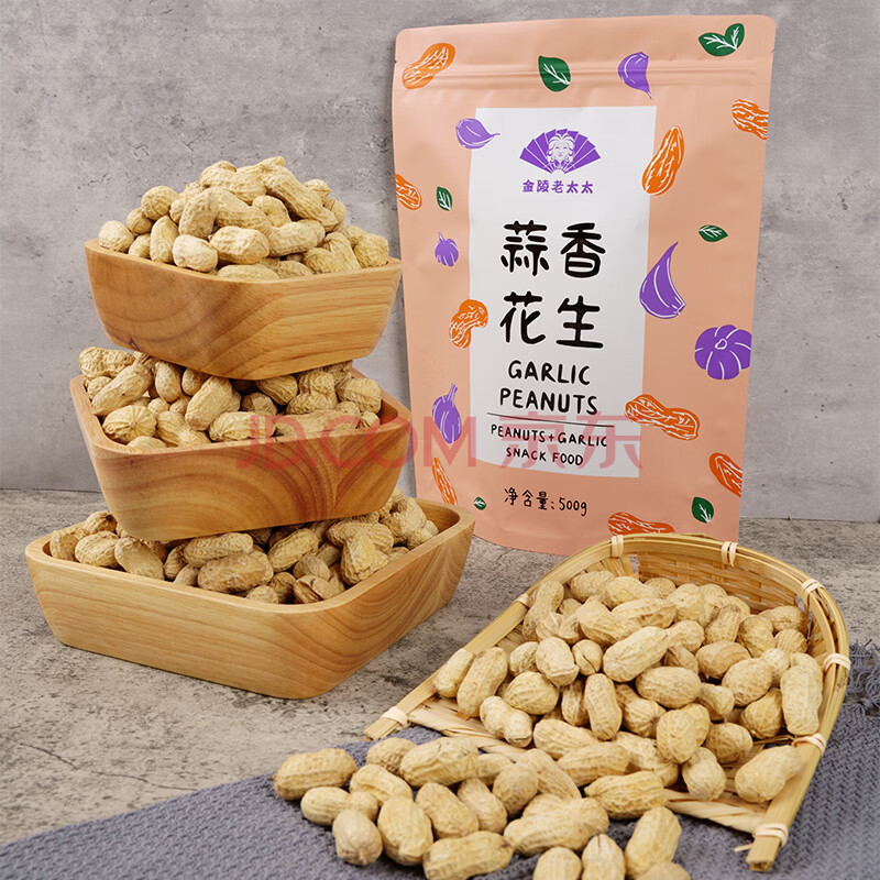商品相册:金陵老太太蒜香花生500g熟蒜味炒熟咸干带壳即食小吃零食炒货大袋第