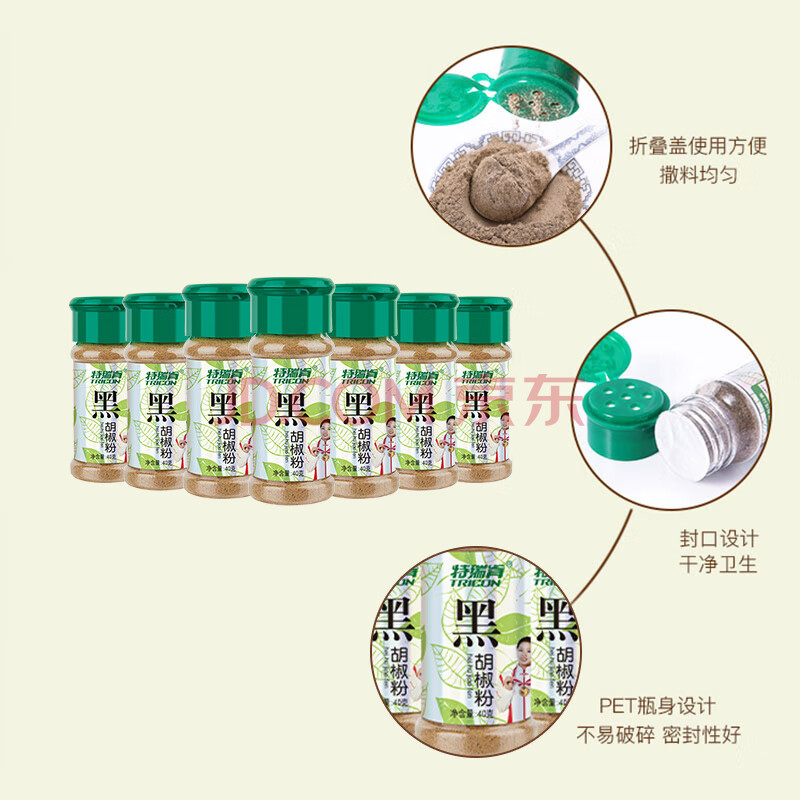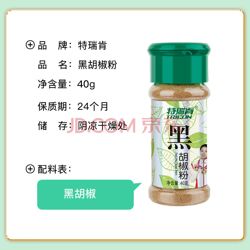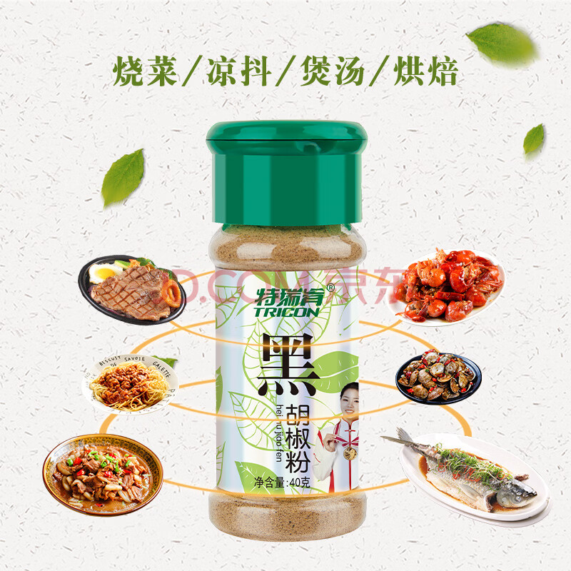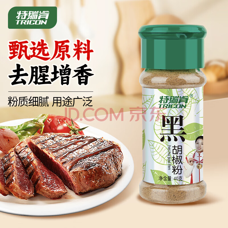 商品相册:特瑞肯(TRICON)黑胡椒粉配料干净烧烤火锅牛排撒料炒菜凉拌煲汤烘焙调味品40g第