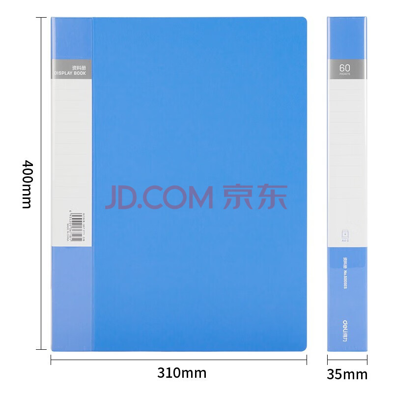 商品相册:得力(deli)资料册5005ES A4蓝色 60页资料册 文件收纳册 活页插袋文件夹 办公用品(整箱12个)第