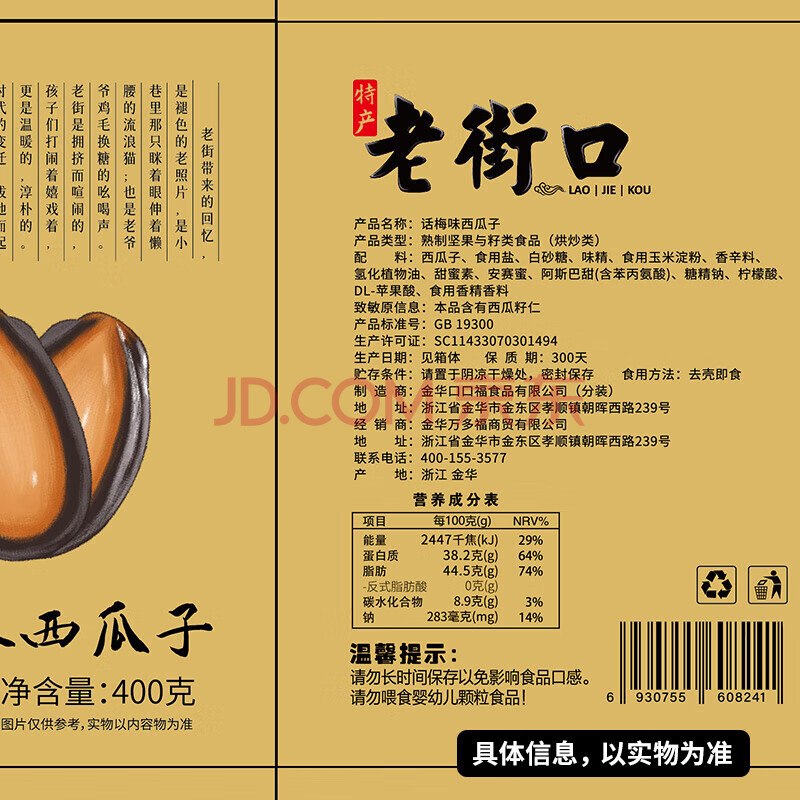 商品相册:老街口西瓜子箱装400g话梅味每日坚果休闲零食炒货独立小包装年货第