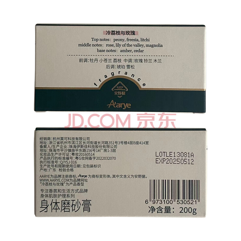 商品相册:安野屋海盐身体磨砂膏冷荔枝与玫瑰200g冰沙质地去角质粗糙肤提亮第1张/共6