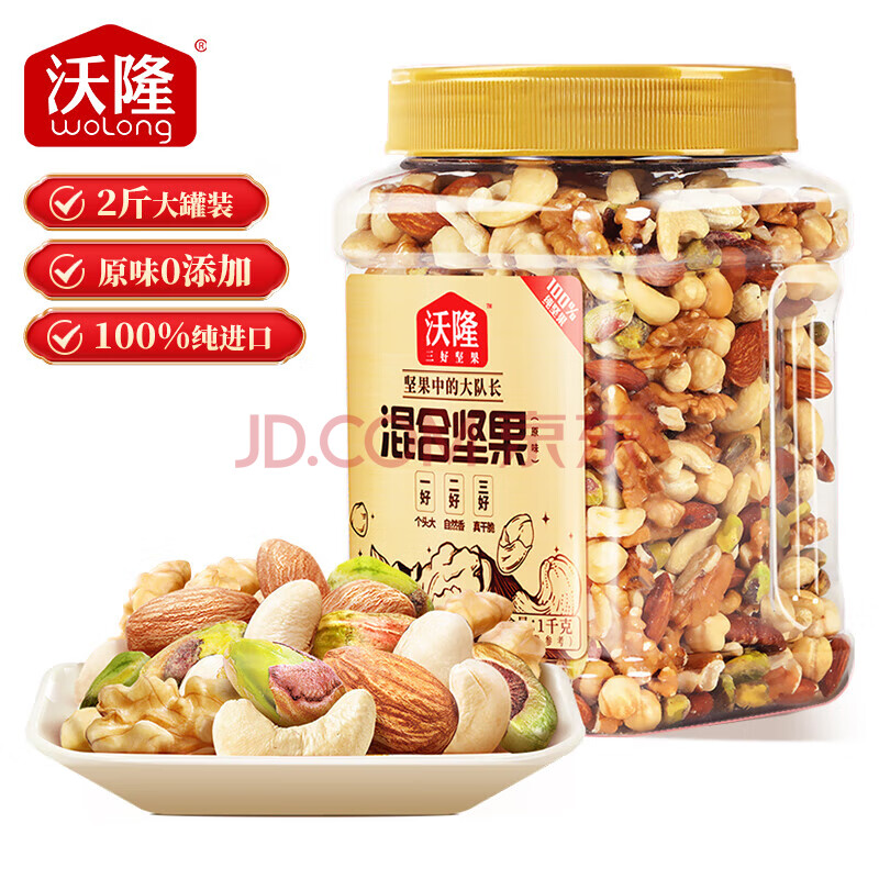 商品相册:沃隆全坚果混合坚果1kg每日零食核桃开心果仁炒货2斤装第1张/共7