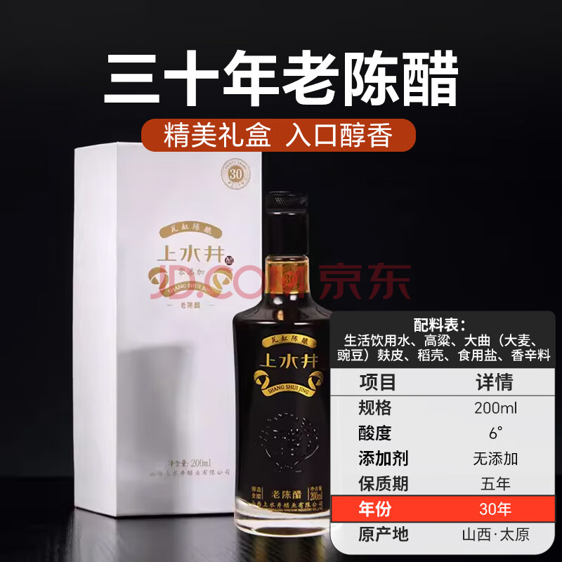 商品相册:上水井三十年陈醋200ml礼盒 山西特产 粮食酿造 送礼礼品第