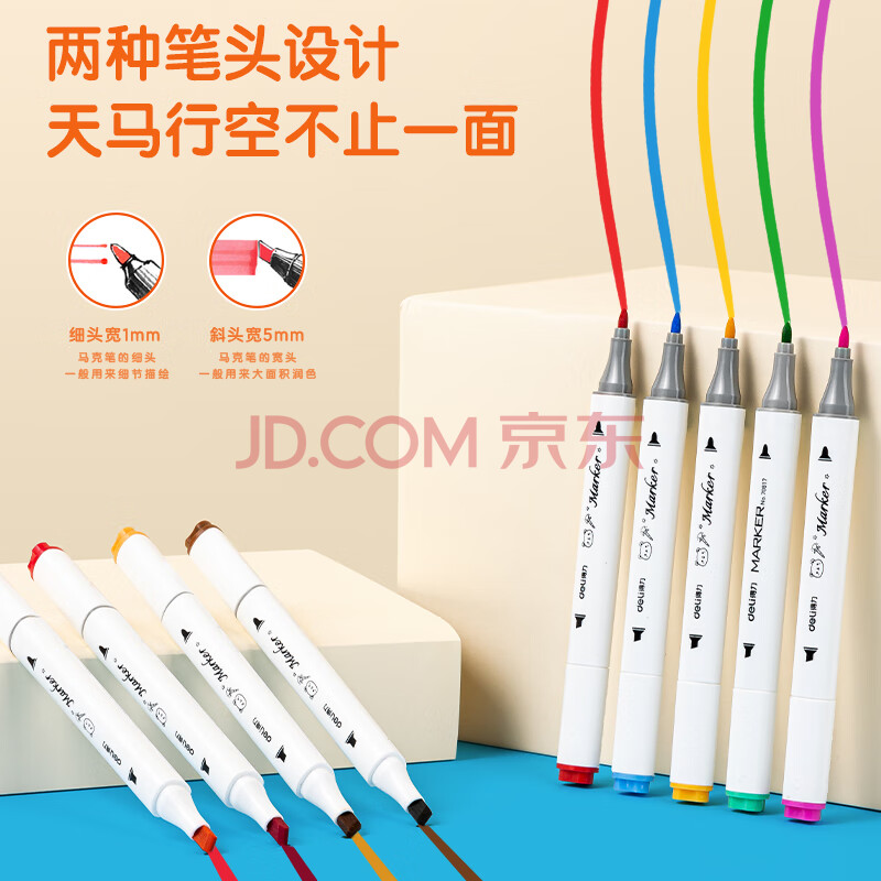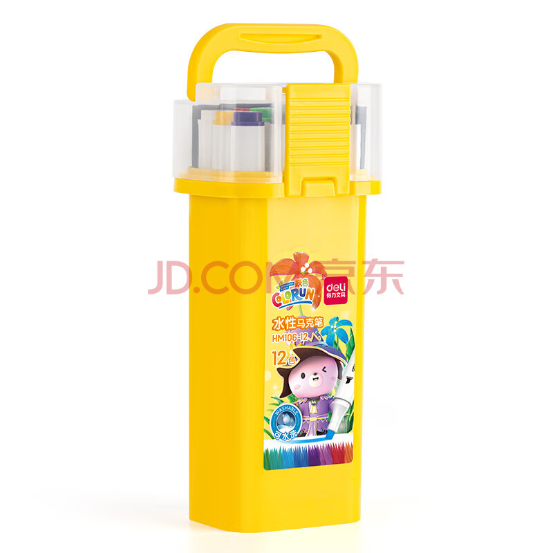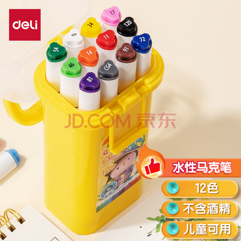 商品相册:得力(deli)三角杆水性马克笔12色学生绘画儿童画画元旦树涂鸦生日筒装荧光笔HM106-12水彩笔美育第