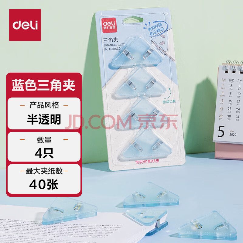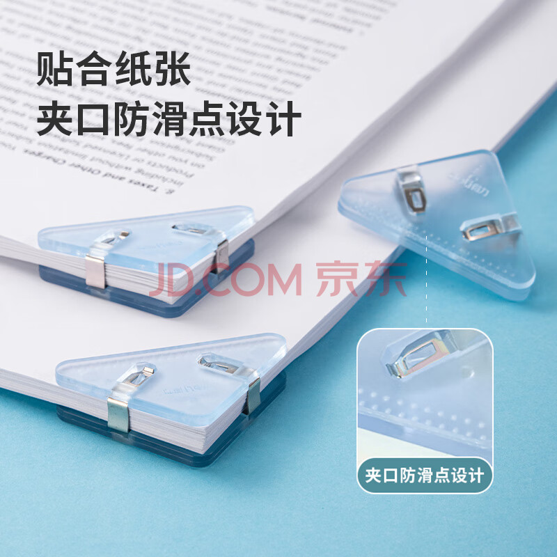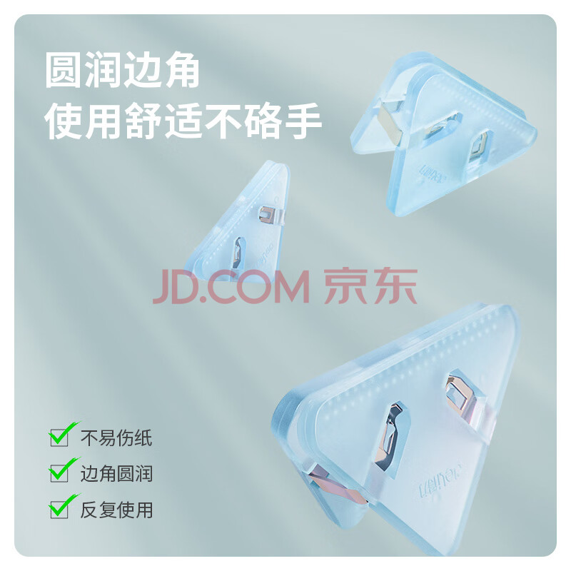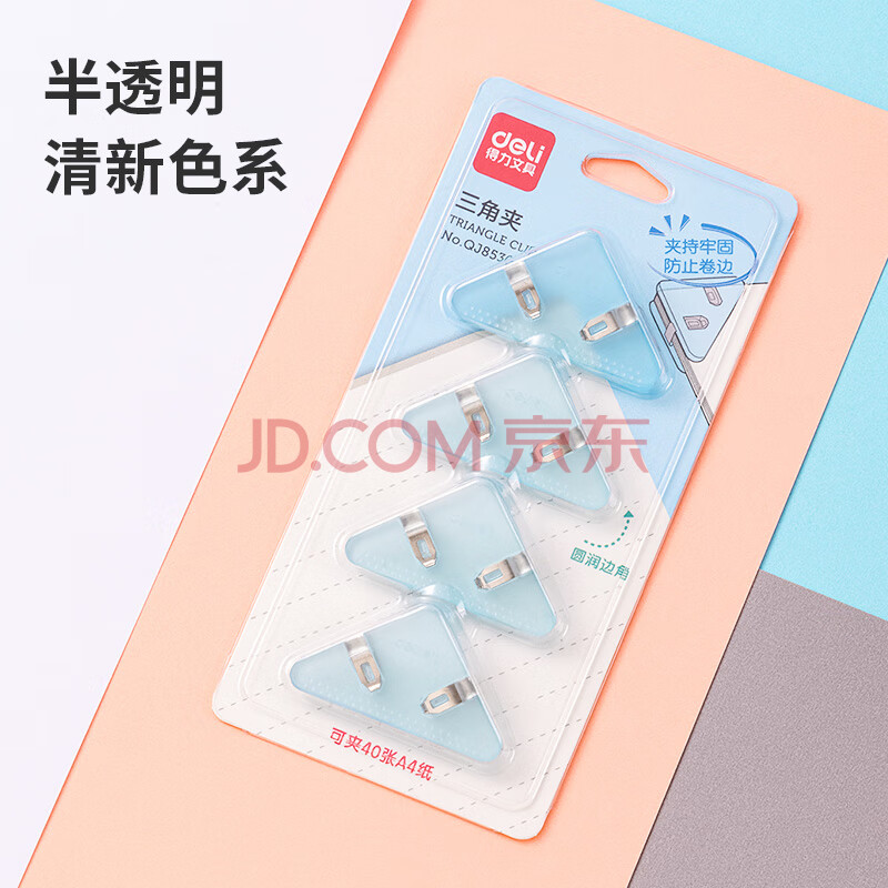 商品相册:得力(deli)三角文件夹边角夹 学生试卷资料文件收纳 防翘边防卷边三角票夹 蓝色 4只/卡 QJ8530第