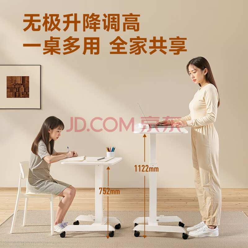 商品相册:Brateck北弧床边桌气动可升降桌可移动电脑桌书桌沙发茶几边桌置物架K150第
