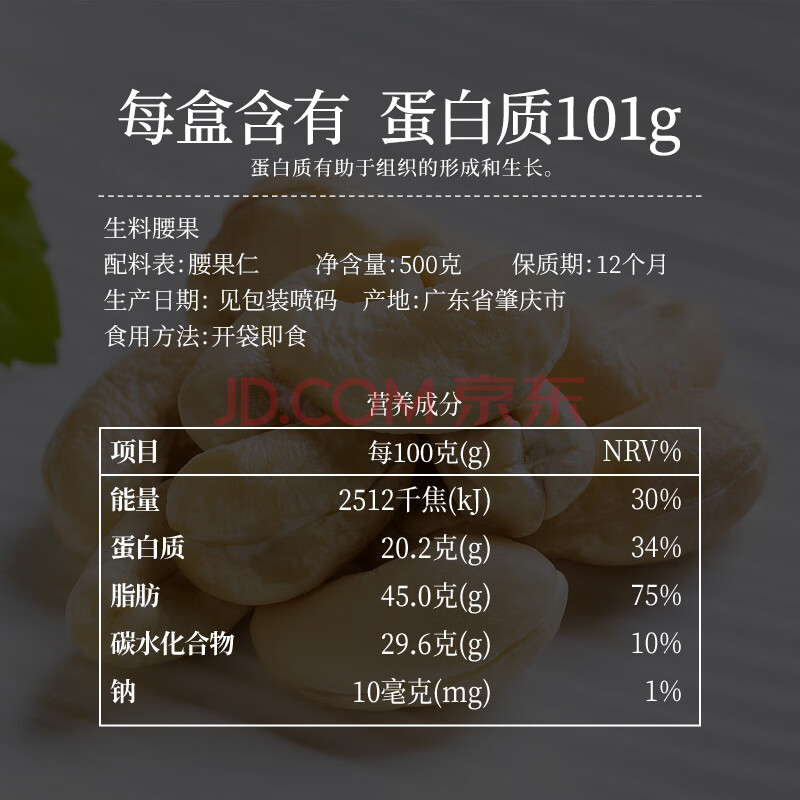 商品相册:原尚工房 原味生腰果仁500g每日坚果炒货休闲零食越南腰果仁干果果仁第